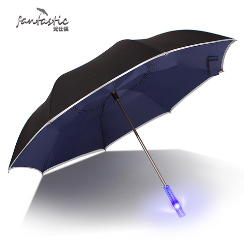 ضوء رائع للحرارة السلامة مع شريط عاكس مظلة طبقة مزدوجة c مقبض عكس مظلة مقلوب