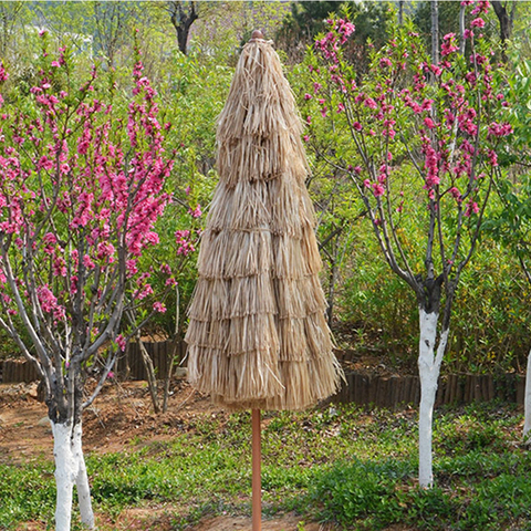 庭の傘2mシミュレーションストローサンシェード調整可能、ティルトビーチ傘サッチティキストロービーチパティオハワイパラソル/