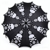 Оптовая продажа, черный кружевной зонт-пагода в стиле ретро, с ручным управлением, с рисунком черепа, зонтик для взрослых на Хэллоуин